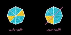 مرکز تقارن: نقطهای در شکل است که اگر شکل حول آن نقطه به اندازه مشخص بچرخد شکل برخودش منطبق می شود.